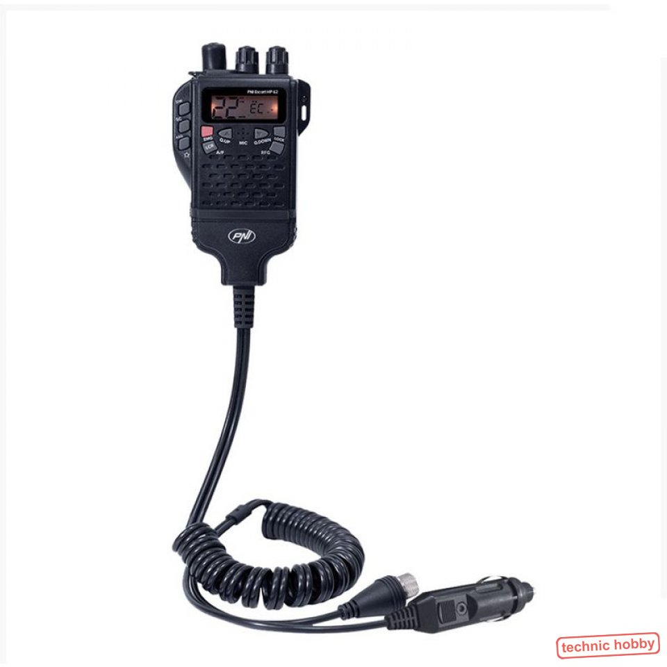 Das PNI Escort HP 62 garantiert in den verschiedensten Anwendungsbereichen Spitzenleistung. Es ist mit einem Frequenzsynthetisator (PLL) ausgestattet, dessen Funktionen auf dem großzügigen Display angezeigt werden. Darüber hinaus ist eine automatische Energiesparfunktion eingebaut. Der externe Anschluss für die Mikrofon-Ohrhörer-Kombination oben am Gerät erleichtert die Nutzung mit Headset, Kehlkopfmikrofon usw.