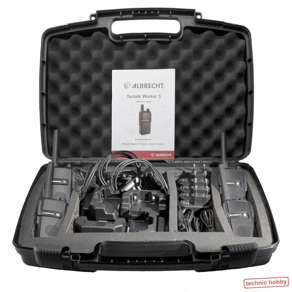 Ein Koffer und alles drin für den Kontakt zum Kollegen auf der Baustelle: Funkgeräte, Mikrofon, Akkus, Ladegeräte, Aufladen und los geht ́s! Tectalk Worker 2 - Das Sprechfunkgerät für Handwerker überzeugt insbesondere den professionellen Anwender durch das äußerst stabile Gehäuse und die diversen Funktionen. Das regenwassergeschützte Gehäuse ist optimal für den Einsatz im Freien geeignet. 16 PMR446 Kanäle (8 mit CTCSS vorprogrammiert) · Stabiles und robustes Gehäuse, regenwassergeschützt · Senden wahlweise mit Sendetaste oder Freisprechen (VOX) · Scanfunktion · Kräftige Wiedergabe und gute Modulation - auch mit dem Lautsprechermikrofon · Energiesparmodus · Betriebsdauer ca. 14 Std. · wechselbarer Akku · diverse Funktionen per optionaler Software programmierbar · Aufladen über Micro-USB Buchse oder Standlader · Kenwood Headsetbuchse · Akkuanzeige |
