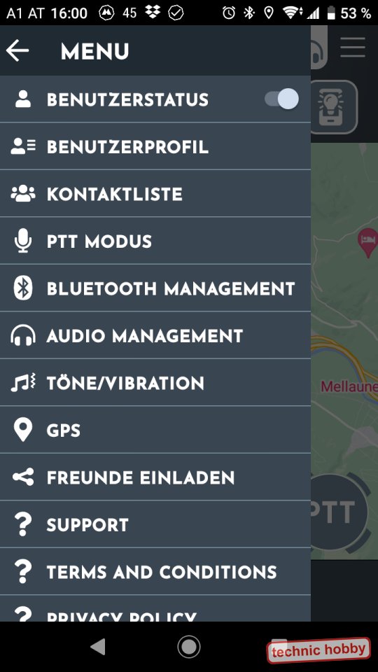 - Wahlweise (via App einstellbar) Push to talk oder On / Off