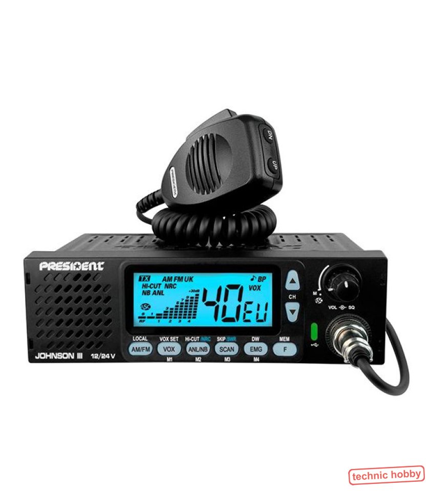 President Johnson III ist ein Multikanalnorm CB-Mobilfunkgerät, welches u.a. mit dem Modell Stabo XM5003 vergleichbar ist. Es ist besonders geeignet für den Einbau in Fahrzeugen, wie PKW, LKW, Caravan, etc.