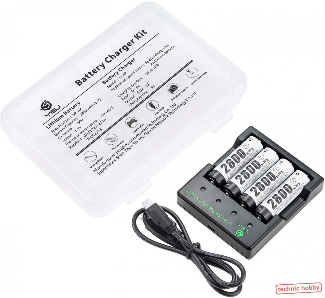 - 1 x Intelligentes Ladegerät speziell für diese AA Li-Ionen Zellen