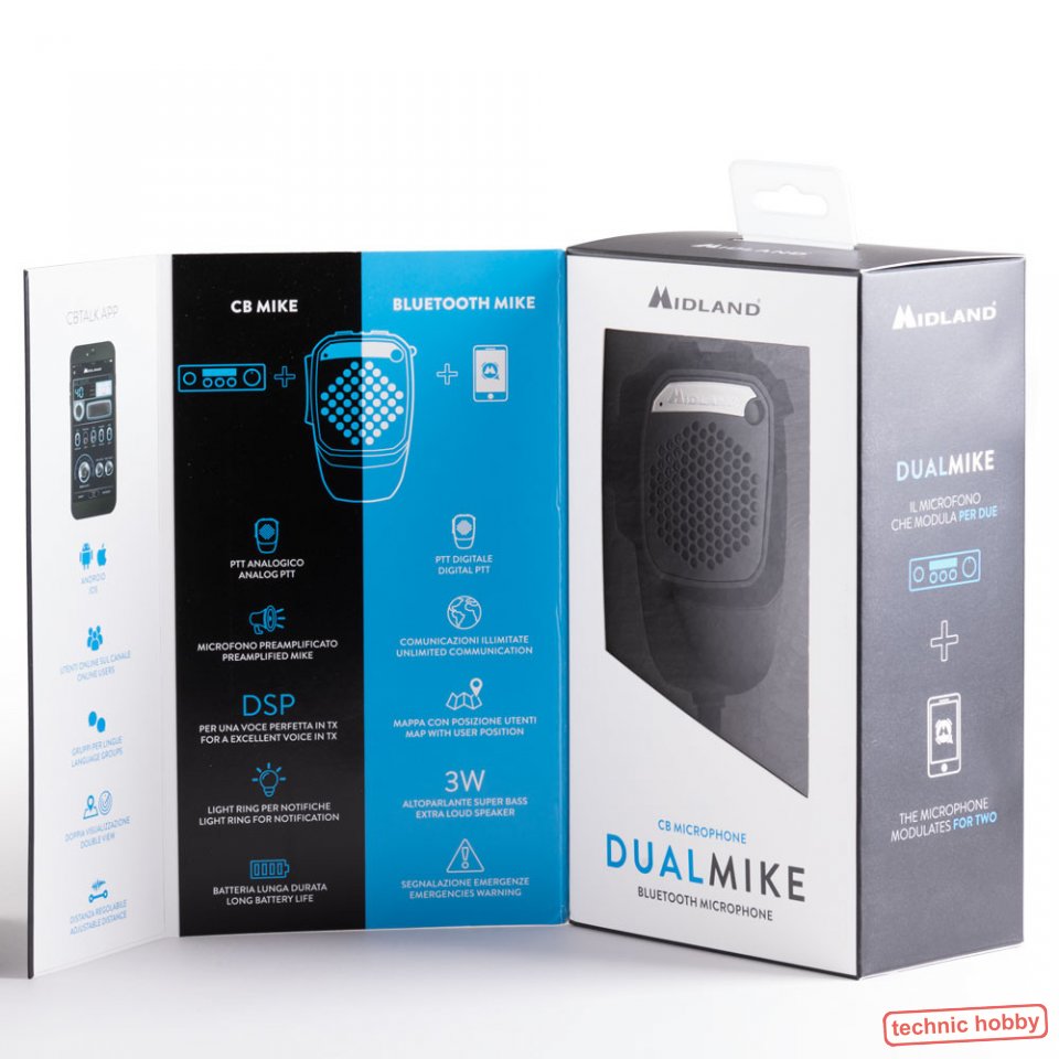 Midland Dual Mike ist das neue revolutionäre CB-Funk-Mikrofon. Mittels der „Dual Mode“ Funktion ermöglicht es die Kommunikation über ein angeschlossenes CB-Funkgerät oder via Bluetooth mit der CB Talk App über das Smartphone. Kommunizieren Sie ganz einfach mit anderen Nutzern über zwei verschiedene Wege.
