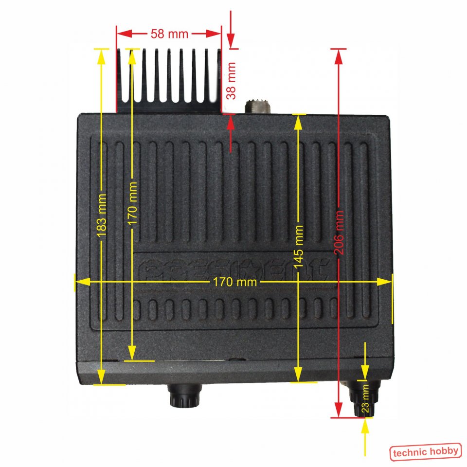 - Band EU = 40 FM (4 Watt), 40 AM (4 Watt), 40 SSB (12 Watt)
