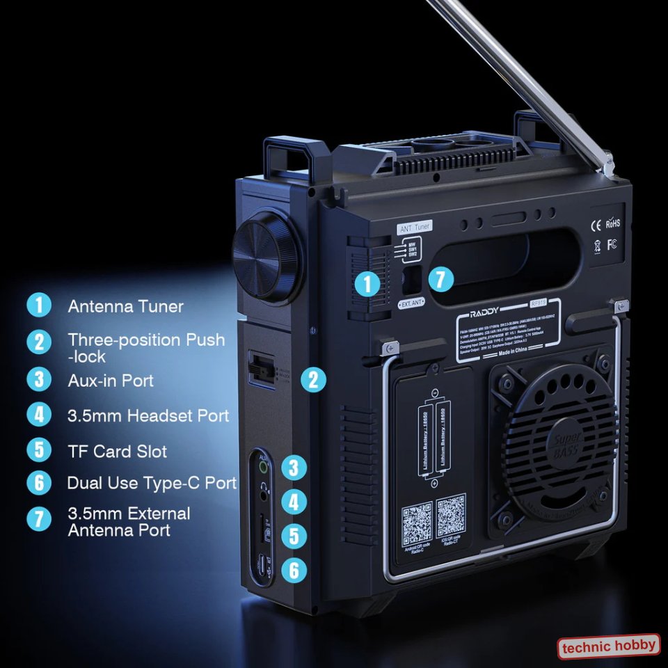 Multiband-Welt-Empfänger FM, AM, SW, CB, VHF, UHF, WX, AIR mit SSB. Maßgeschneidert für den weltweiten Einsatz, mit hervorragendem Sound. Die Evolution des RF75A und RF760 in der nächsten Stufe. Mittels der Präzisionsabstimmung erfolgt die Frequenzwahl mit zwei Knöpfen mit sattem Klicken oder man verwendet die Schnellabstimmungstasten. Der RF919 speichern bis zu 1600 Kanäle. Dual-Display, der 3,54-Zoll-Hauptbildschirm liefert wichtige Empfangsdetails, ergänzt durch einen sekundären Bildschirm für Signalstärke und Uhrzeit. Mittels der Remote-App-Steuerung kann der RF919 Weltempfänger mühelos bedient werden. Einhändige Bedienung trifft auf leistungsstarke Wireless-Funktionalität für eine nahtlose Steuerung über ein Smartphone. Der RF919 verfügt über einen starken 5000 mAh Akku, Bluetooth-Konnektivität, Micro-SD-Unterstützung und ein leistungsstarkes 20-W-Lautsprechersystem für ein überragendes Audioerlebnis. USB-C Ladebuchse und zur Verbindung mit PC / Notebook als Lautsprecher usw. Hervorragende Antennenkonnektivität durch drei externen Antennenoptionen für unübertroffene Klarheit auf allen Bändern. Optimaler Empfang unabhängig von Ihrem Standort ist damit garantiert. |