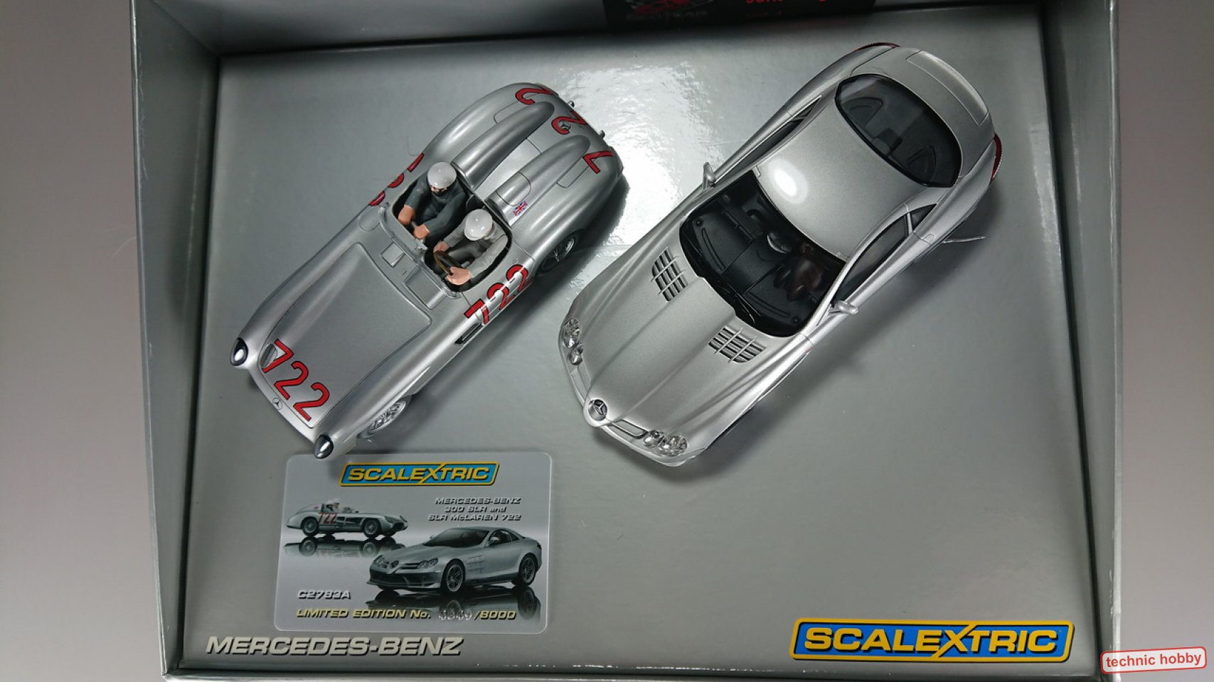 Zwei Legenden, der SLR von 1955 mit der Startnummer des Gewinners Juan Manuel Fangio und der moderne Nachfolger. Die liebevoll gestalteten Fahrzeuge entsprechen den 100% den Vorbildern. Beide Fahrzeuge können einfach und schnell für digitale Bahnen nachgerüstet werden. Zwei Scalextric Autos die keine Wünsche offen lassen in einer attraktiven Showbox. Inklusive Seriennummern Zertifikat (Card). Limitierte Auflage! - weltweit gibts es davon nur 8000 Stück Highlights