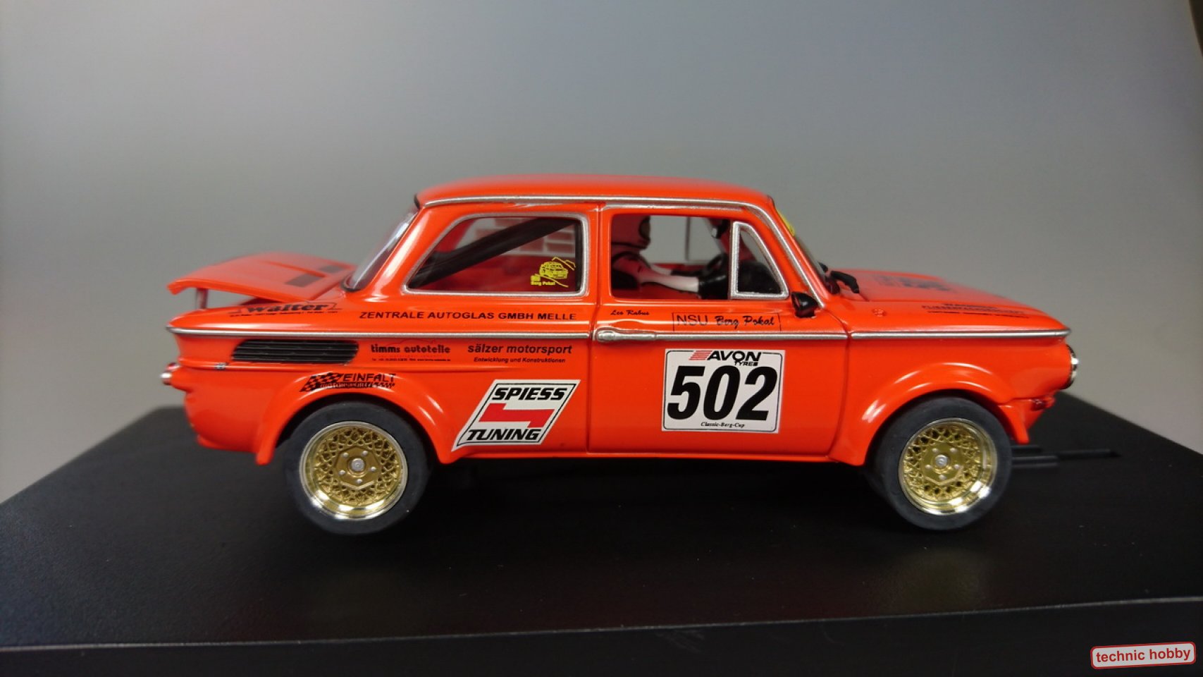 Die Rennsemmel der 60er und 70er Jahre. Der legendäre NSU TT, hier in knallorange und mit allen Aufklebern und Details wie er von Leo Rabus gefahren wurde.
