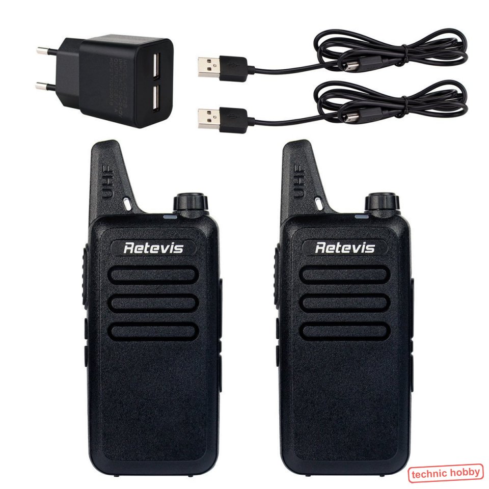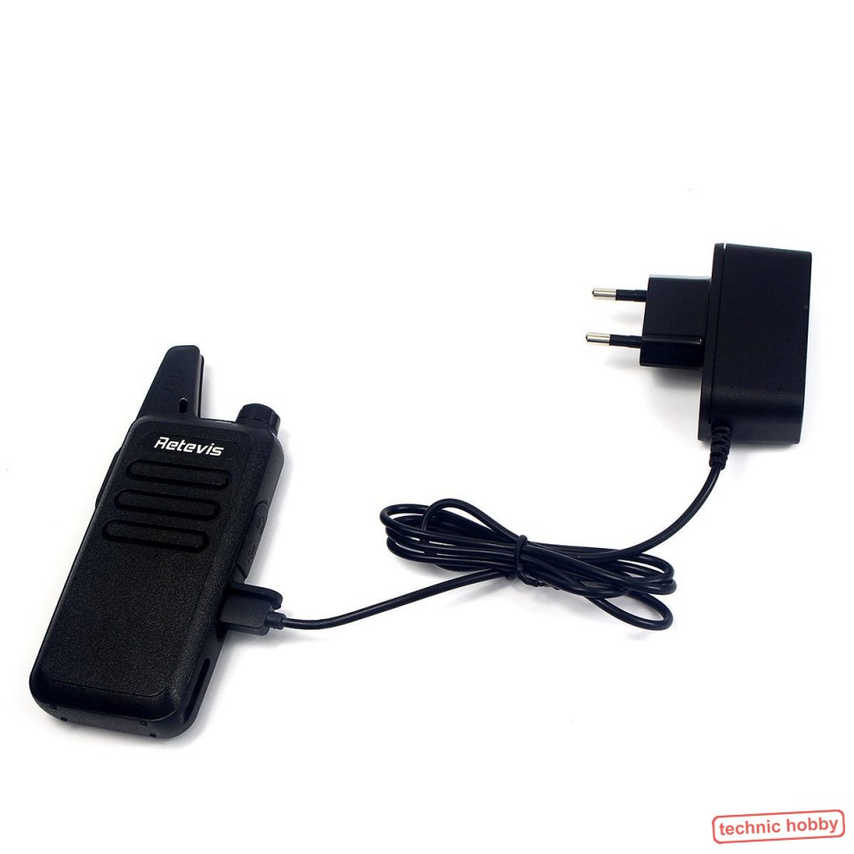 Das RT22 Walkie Talkie wird mit USB-Ladekabel oder Eurostecker geliefert.