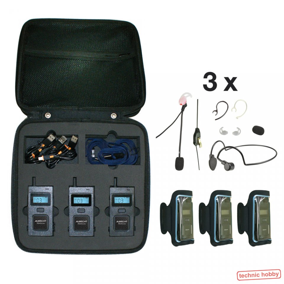 Das ideale Set für Schiedsrichter! Albrecht Multicom Funkgeräte bieten drahtlose Vollduplex-Kommunikation (gleichzeitiges Hören und Sprechen) für bis zu 5 Personen während weitere 94 Teilnehmern zuhören können. Ein weiterer Pluspunkt ist die kostengünstige Nutzung ohne zusätzliche Gebühren und die einfache Funktionsweise: Gerät einschalten, Headset aufsetzen und kommunizieren ohne extra Tastendruck – bis zu 10 Stunden lang. Die Geräte sind europaweit nutzbar (dank 2.4 GHz ISM Band). Die vielseitigen, robusten und wasserfesten Geräte eignen sich für verschiedenste Einsatzbereiche, sind bewährt bei Sportveranstaltungen und z.B. bei Schiedsrichtern. Zudem ist das Multicom System auch auf vielen weiteren Veranstaltungen, wie bei Konzerten, bei Konferenzen, im Servicebereich, auf Baustellen, in Industrieanlagen oder für viele weitere Anwendungen ideal geeignet – für eine schnelle und zuverlässige Kommunikation. Eine Unterteilung in verschiedene Gruppen ist möglich. Die handlichen und leichten Geräte sind trotz ihrer geringen Abmessungen sehr solide und verfügen über ein großes, leicht ablesbares Display. |