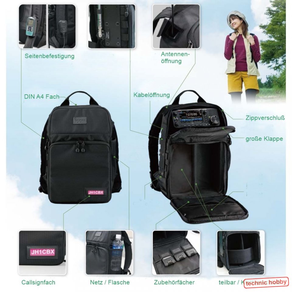 | Der Rucksack erfüllt alle Anforderungen für den mobilen Betrieb der Icom IC 705 und kann auch für ähnliche oder baugleiche Geräte verwendet werden. |
