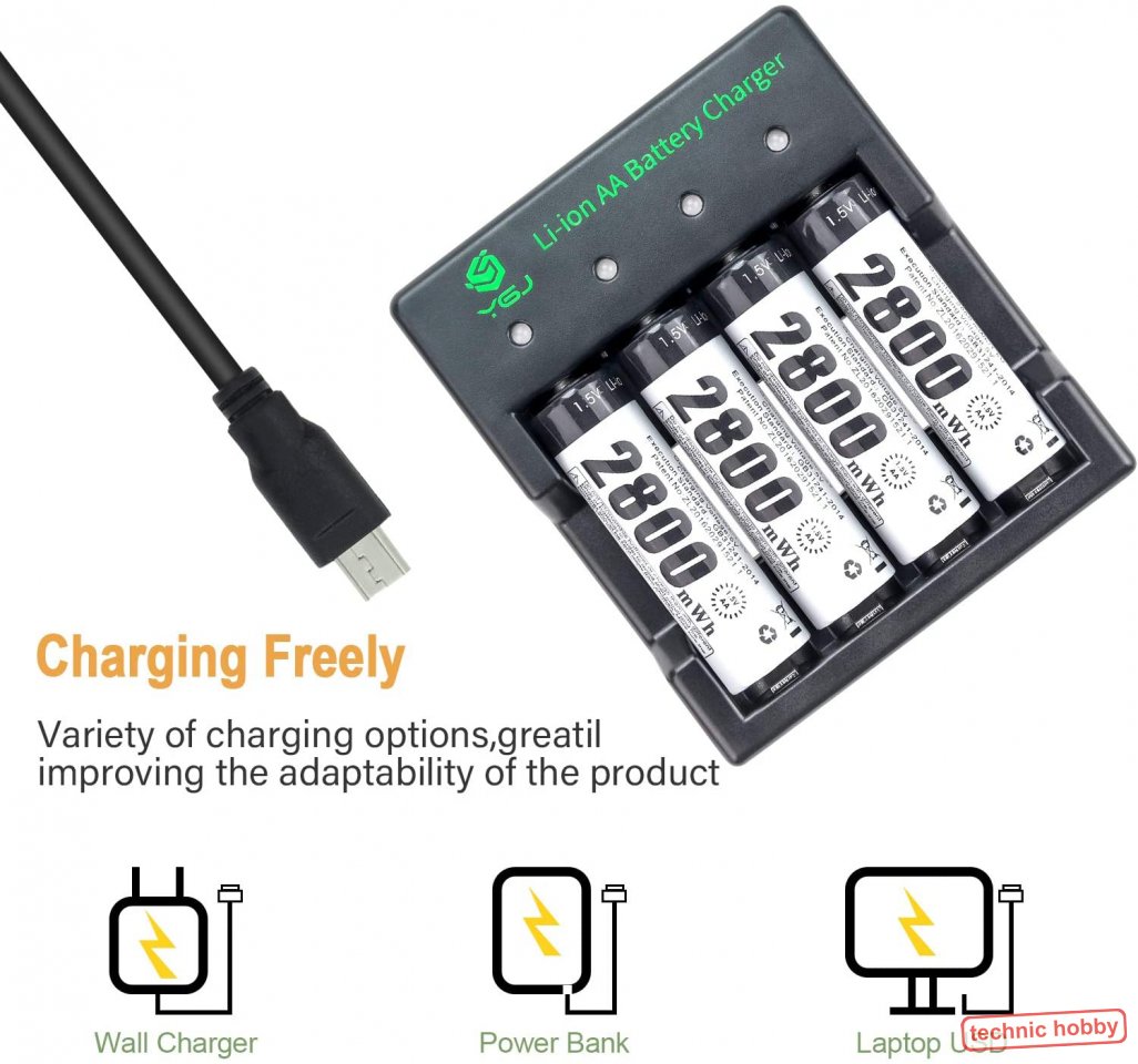 - 1 x Intelligentes Ladegerät speziell für diese AA Li-Ionen Zellen