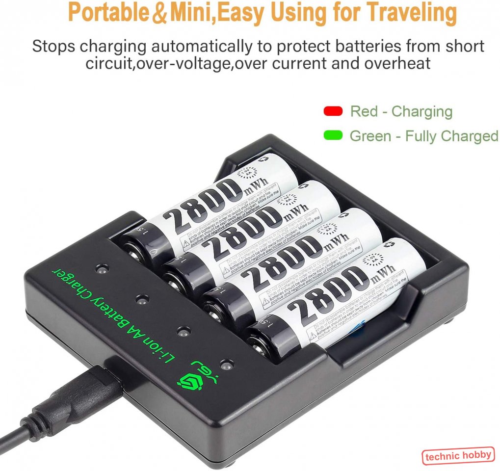 - 1 x Intelligentes Ladegerät speziell für diese AA Li-Ionen Zellen