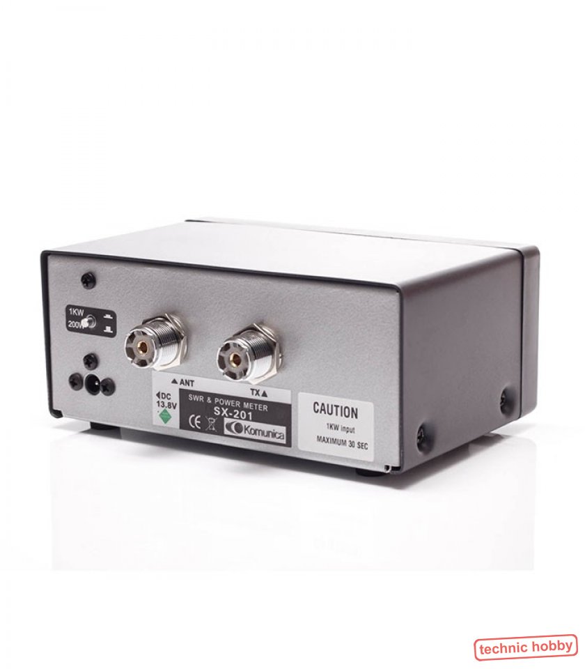 Analoges Stehwellen und Leistungsmessgerät. Die Eingangsleistung muss mindestens 0.5 Watt betragen. Große und gut ablesbares Instrumet, wenn 12V anschlossen sind auch Hintergrundbeleuchtete Skala. Anschlüsse PL Buchsen, Taster für AVG PEP Messung, maximal verkraftet das Messgerät 1kW, Messbereich 5 / 20 / 200 Watt wählbar. |