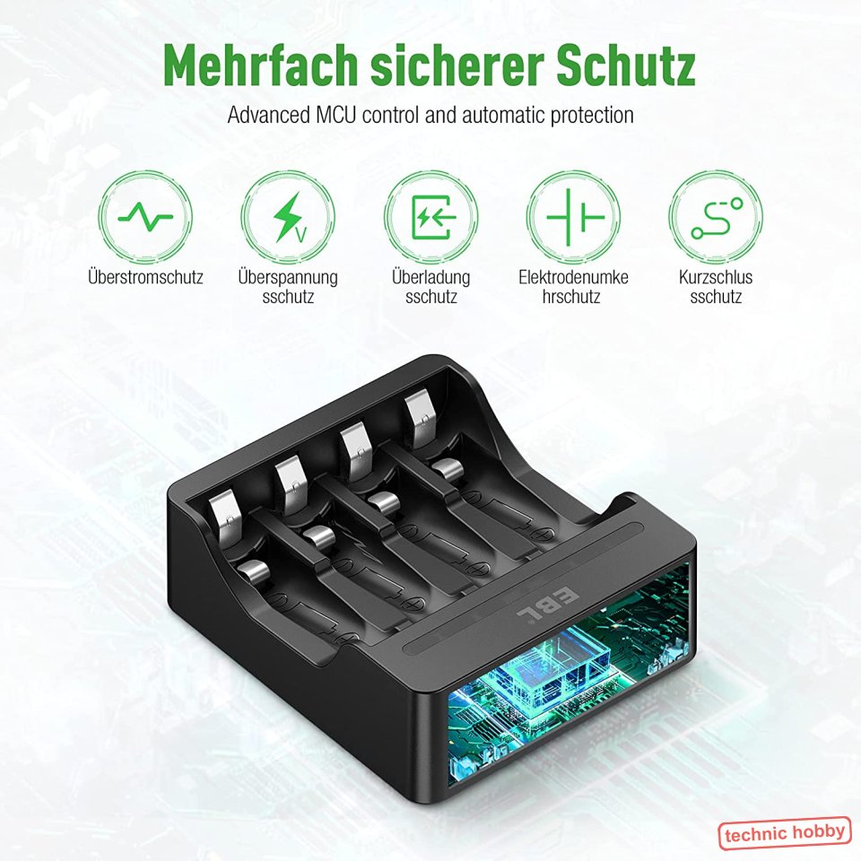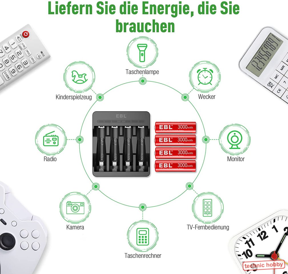 - 1 x Intelligentes Ladegerät speziell für diese AA Li-Ionen Zellen