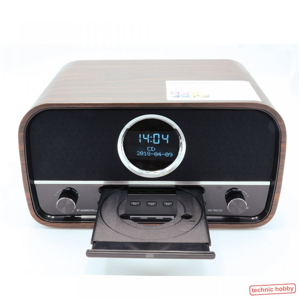 Erstmals bringt Albrecht mit dem DR 790 CD eine Kombination aus Digitalradio und CD-Player ins heimische Wohnzimmer. Zusätzlich bietet das Gerät im edlen braunen Holzgehäuse weitere Betriebsmodi wie UKW-Radio, USB-Anschluss (für MP3-Player), AUX-IN und Bluetooth (z. B. zum Abspielen von Musik über Spotify). 20 Senderspeicher ermöglichen das komfortable und schnelle Suchen und Auswählen der persönlichen Lieblingsradiostationen. Das wertige Holzgehäuse sorgt mit zwei starken 15 Watt Lautsprechern für eine exzellente Klangqualität. Ein optischer Blickfang des Gerätes ist das runde LC-Display in stylischer Bullaugenoptik. Zwei einstellbare Weckzeiten, Sleeptimer und Snooze-Funktion runden die Funktionen des Allround-Gerätes praktisch ab. |
