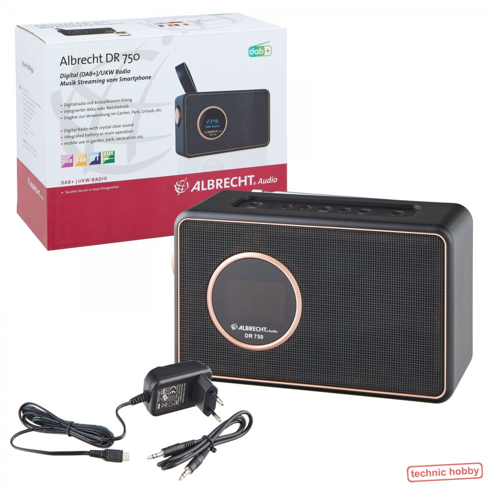 Das schwarze Digitalradio DR 750 von Albrecht Audio ist ein tragbares Multitalent und beinhaltet die Funktionen DAB/ DAB+ Radio, UKW-Radio und Radiowecker. Zusätzlich kann es vom Smartphone Musik streamen (z.B. Spotify). |