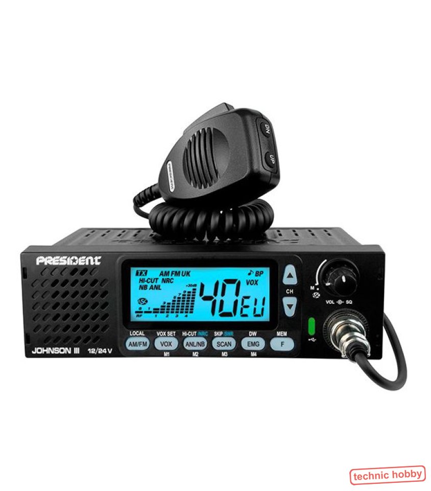 President Johnson III in der neuen Version 2025 ist ein Multikanalnorm CB-Mobilfunkgerät. Es ist besonders geeignet für den Einbau in Fahrzeugen, wie PKW, LKW, Caravan, etc.und daher sehr beliebt bei Fernfahrern.