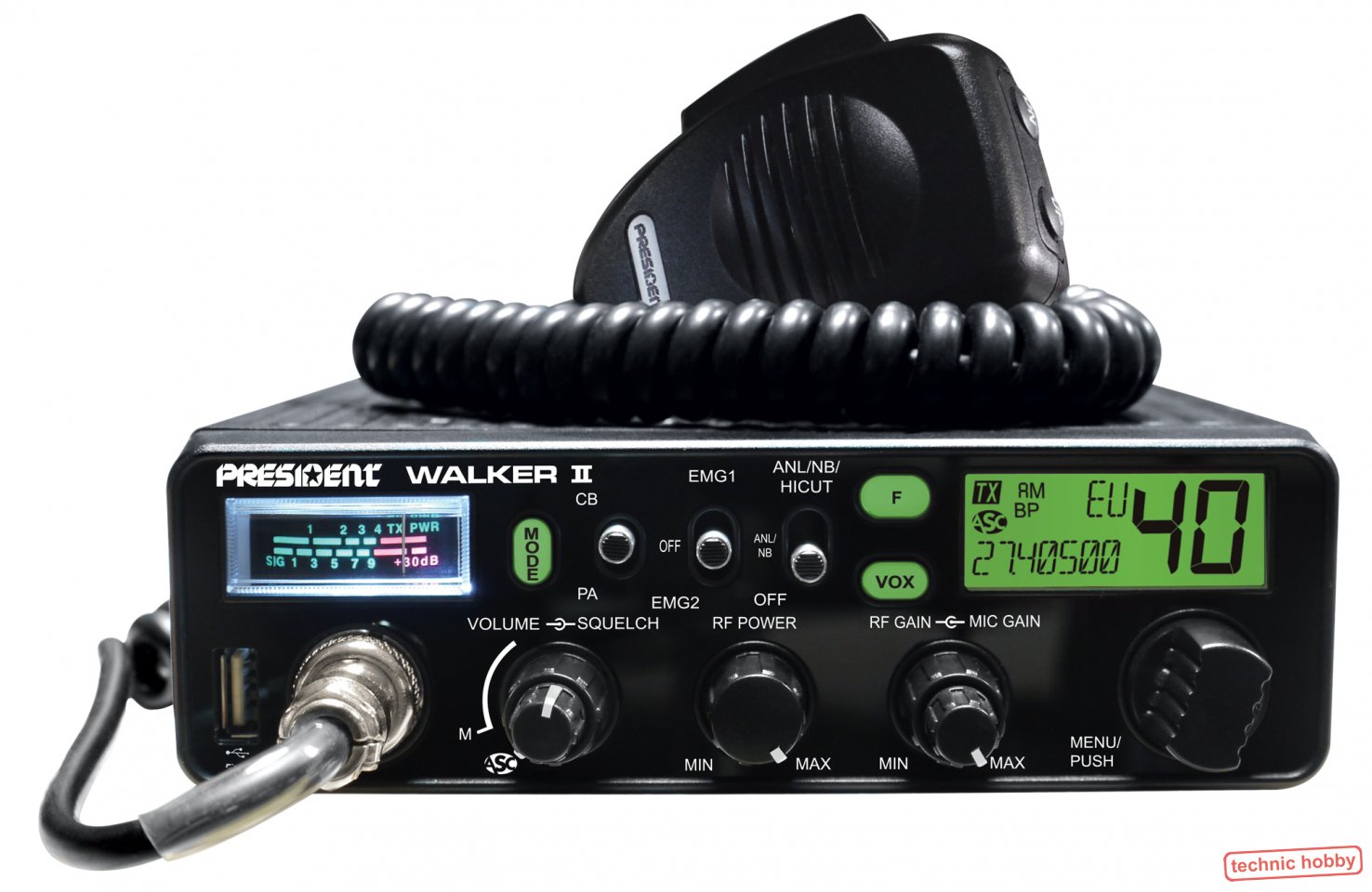 Das President Walker war ein modernes CB-Funkgerät im klassischen Design, ohne viel Spielereien und mit analogem S-Meter. Um die Tradition hier fortzuführen, hat President jetzt die Walker II als Nachfolger eingeführt. Auch hier ist die klassische Optik weitestgehend beibehalten worden, zu dem analogen S-Meter gesellt sich jetzt aber auf der rechten Seite ein LC-Display mit den wichtigstens Statusanzeigen, welches in 7 Farben beleuchtet werden kann. Neben dem Kanal wird auch die zugehörige Frequenz, verschiedene Statusanzeigen, Modulationsart und Ländernorm übersichtlich angezeigt. Eine Vox-Funktion ist ebenso vorhanden wie eine USB-Ladebuchse. Wir empfehlen das Funkgerät mit dem Albrecht VOX Mikrofon zu kombinieren. Dieses VOX Mikrofon hat auch Aktive Noice Canceling! |