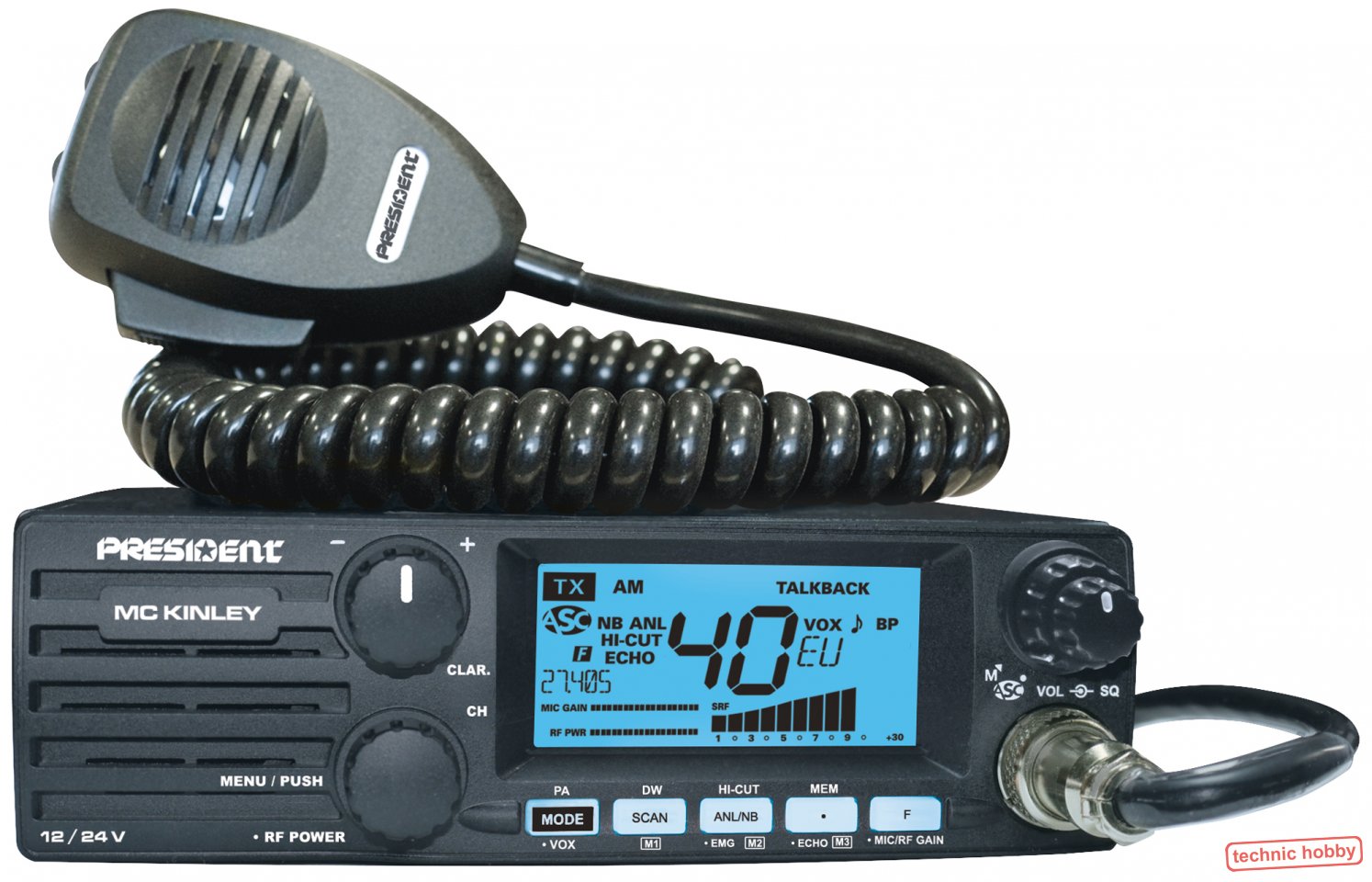 CB Funk mit AM/FM/SSB - Multinorm, einfachste Bedienung, mit PA Der Frontlautspecher ist ideal für den Einbau in LKWs oder generell wenn man das Funkgerät einbauen möchte. Mit einer Breite von 170mm passt das Mc Kinley auch in den DIN Schacht! (DIN Rahmen bitte extra ordern) AM/FM 4/4 Watt SSB 12 Watt Multinorm, in ganz Europa zugelassen! Die Verarbeitung des Gerätes ist hochwertig, die Qualität der Platinenbestückung, das Layout, die Verlötung, die mechanische Verarbeitung und das Gehäuse sind erstklassig und entsprechen dem, von President gewohnten Standard. |