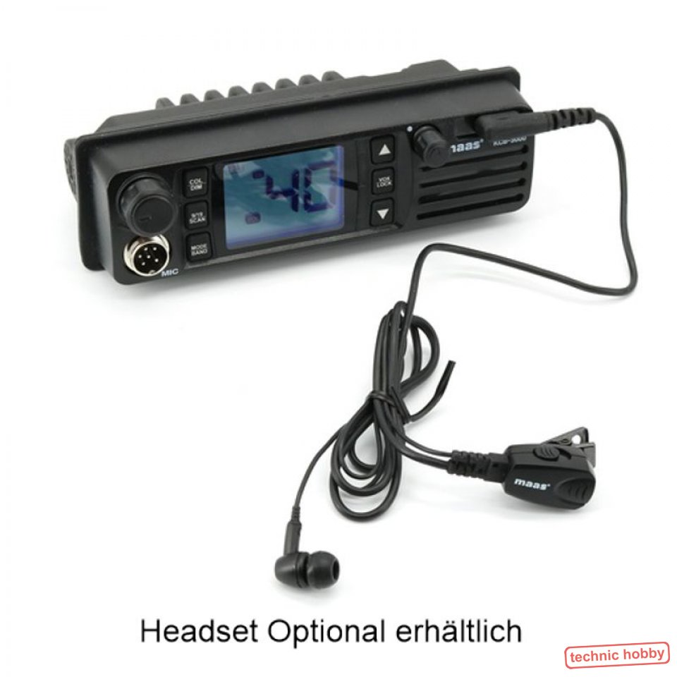 MAAS KCB-3000 CB-Funkgerät Multinorm mit Voxmikrofon und Headsetanschluss. Eingebauter Frontlautsprecher mit sehr guter lauter Wiedergabe. Durch die sehr geringe Einbautiefe paßt das Gerät in jeden DIN-Schacht und ist geeignet zur Auf-/oder Unterbaumontage.