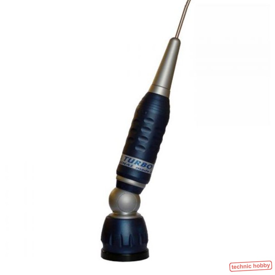 Sirio Turbo 3000 Blueline - leistungsfähige Mobilantenne mit speziellem, kippbaren Gelenkfuß, ein Handgriff und die Antenne ist umgelegt. Besonders praktisch bei Einfahrt in Garagen, Tiefgaragen oder in den Carport - echte Einhandbedienung!