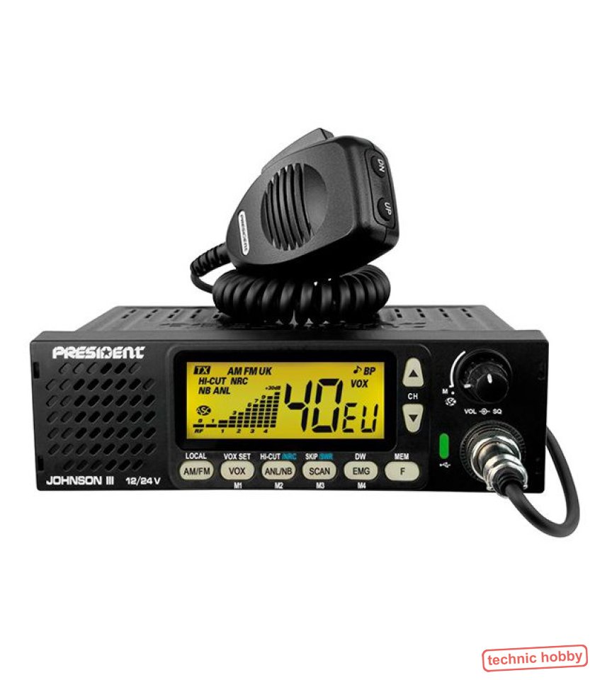 President Johnson III ist ein Multikanalnorm CB-Mobilfunkgerät, welches u.a. mit dem Modell Stabo XM5003 vergleichbar ist. Es ist besonders geeignet für den Einbau in Fahrzeugen, wie PKW, LKW, Caravan, etc.