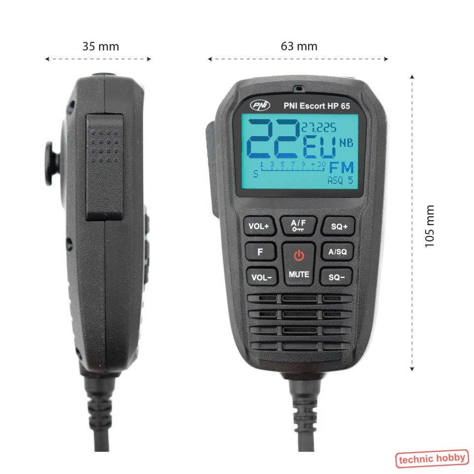 Die HP 65 PNI Escort CB Station ist eine der kleinsten CB Stationen auf dem Markt. Aufgrund seiner sehr geringen Größe und insbesondere der Position aller Steuertasten am Mikrofon wird das PNI HP 55 zu einem äußerst zuverlässigen Kommunikationswerkzeug. Das CB Funkgerät selbst kann an einer beliebigen Stelle unauffällig montiert werden. Dank Schnellverschluß ist es auch mit einem Handgriff abzunehmen. Das große LCD-Lautsprechermikrofon mit den Bedienelementen verfügt über einen Westernstecker und kann ebenfalls schnell abgesteckt und z.B: im Handschuhfach verstaut werden. Als Multinormgerät läßt sich das Escort HP-65 leicht auf verschiedene Ländernormen umschalten.