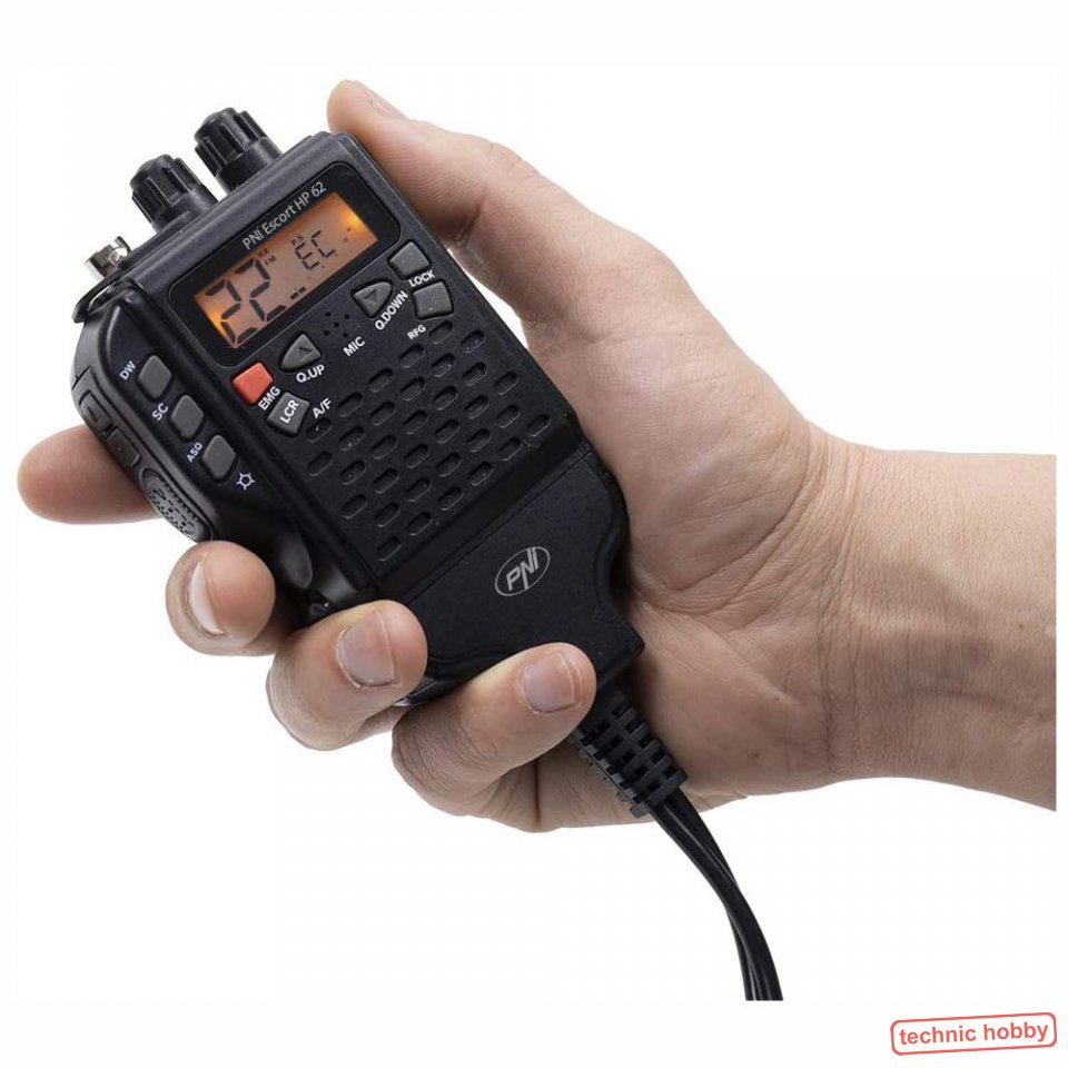 Das PNI Escort HP 62 AK mit Lithium-Ionen Akkupack, Aufsteckantenne, Ladestecker und für den Betrieb im Auto wird der mit KFZ Adapter (Stromanschluß via Zigarettenanzünder, Antenne PL239 Anschluß) auch noch gleich mitgeliefert.