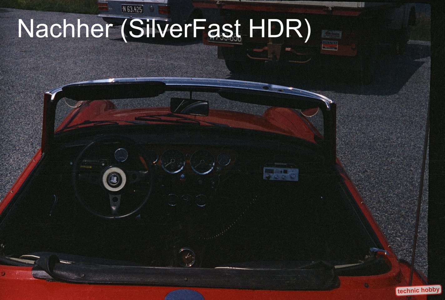 Einer der Vorteile, es gibt tolle Möglichkeiten der gewünschten Formate (siehe Daten des 8200i) . Ich habe mich entschieden zusätzlich noch die SilverFast HDR Software dazu zu kaufen, weil damit vom Scanner gelieferte Rohdaten (also nix bearbeitet, absolute Scanndaten, auch der IR Kanal wird dabei gespeichert) nachträglich bearbeitet werden können. Ansonst macht das die mitgelieferte SilverFast Software beim Scannen und speichert nur das Ergebnis. Idealerweise scannt man im RAW Format und hat so die Möglichkeit Fotos jederzeit vom Rohmaterial weg neu zu bearbeiten. Siehe hier den Vergleich, links RAW (Rohdaten) rechts mit iSDR und nachträglich mit SilverFast HDR bearbeitet. Hinterher verwendet ich manchmal noch COREL PaintShopPro Ultimat um schnell und einfach (hat auch KI on board) nachzubessern.