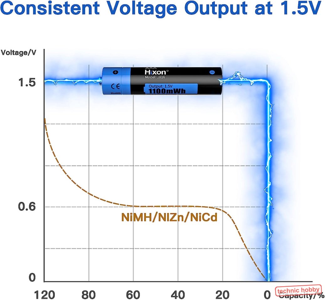 Die Spannung dieser Akkus ist konstant und gereglt 1,5 Volt Ausgangsspannung.