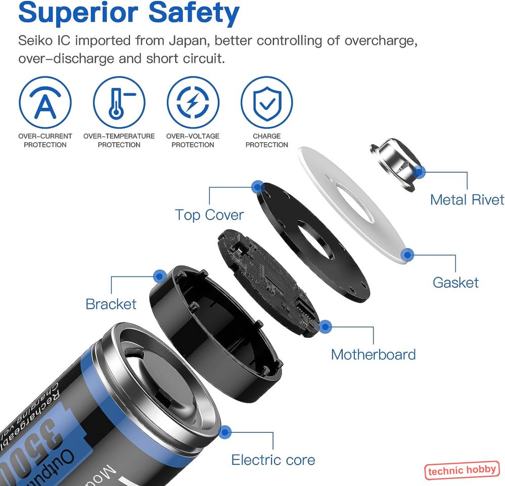 Vorteil dieser neuen Akkutechnik ist der spezielle Aufbau der Zellen mit eingebautem Regler. Konstante Spannung von 1,5 Volt bis zum Schluß. Schutzschaltung gegen tiefentladen, Überspannung usw ist eingebaut in jeder Zelle.