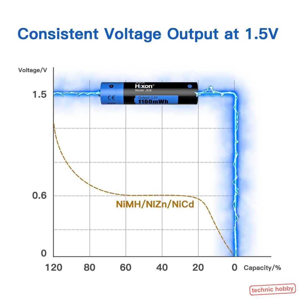Die Spannung dieser Akkus ist konstant und gereglt 1,5 Volt Ausgangsspannung.