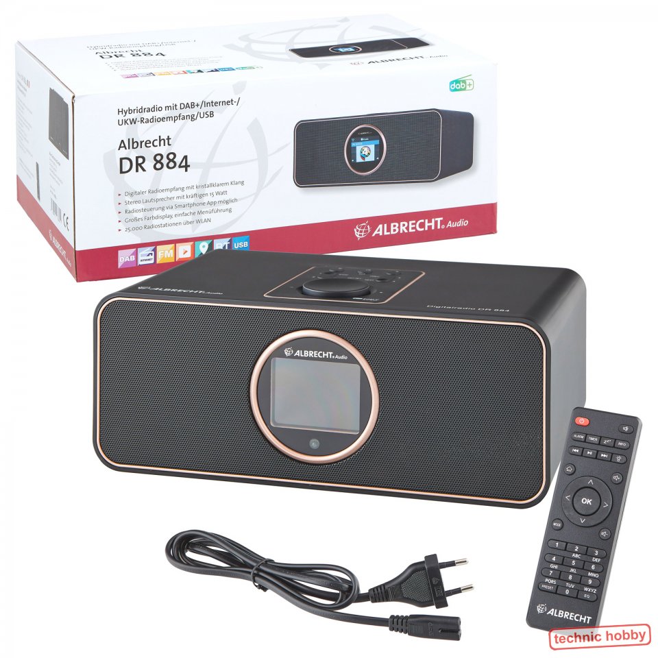 Es können über 25.000 weltweite Internetradiosender und rund 300 deutsche DAB+ Sender empfangen werden. Das hochauflösende Farbdisplay ermöglicht die Anzeige von Bildern und Grafiken (Slideshow im DAB+ Modus). Besonders komfortabel ist die Bedienung mit dem Smartphone via DLNA-Heimvernetzung über die entsprechende App – auch die eigene Musik auf dem Handy kann so unkompliziert über das DR 884 wiedergegeben werden.