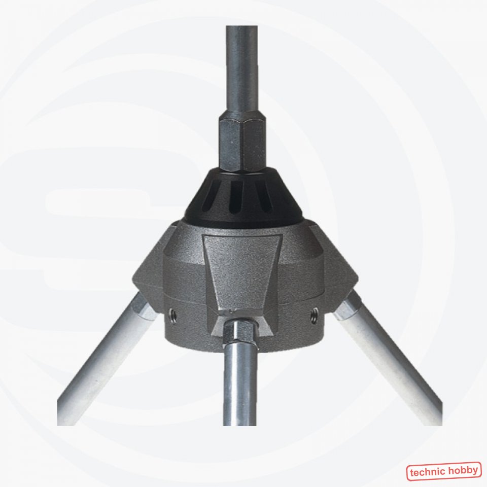 Die Antenne kann auf jeden Mast mit 35 bis 40 mm montiert werden. Das Kabel (PL 259 Anschluß) ist mittig unten ausgeführt und zur Führung innerhalb des Mastes ausgelegt. Der stabile Aluminium Druckgußfuß nimmt Strahler und Radiale auf.