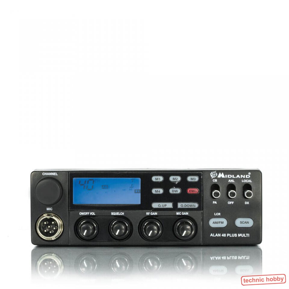 Midland 48 Plus Multi B- Dieses CB Funkgerät kommt jetzt mit SMD-Technik und blauer LCD-Anzeige. Es besticht durch modernste Technik (SMD), Mikroprozessorsteuerung und einer erstklassige Verarbeitung.
