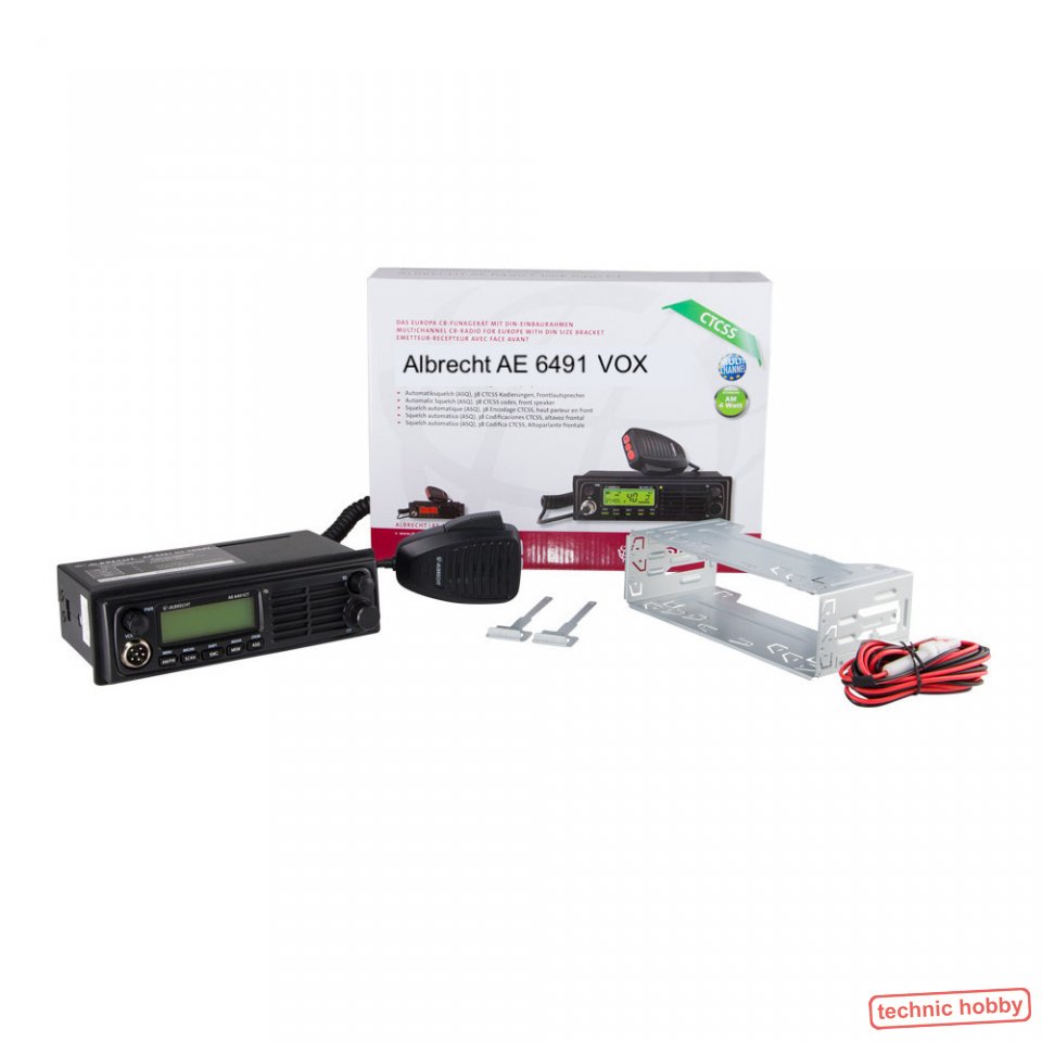 Das hochwertige Gerät bietet 40 AM sowie 40 (80) FM Kanäle und entspricht allen europäischen Funk-Standards. Darüber hinaus kann das Albrecht AE 6491 VOX Multinorm CB-Funkgerät sowohl an 12 Volt als auch direkt an 24 Volt angeschlossen werden. Ein 24V/12V-Spannungswandler erübrigt sich somit. Auch die Montage ist denkbar einfach: Durch die geringe Einbautiefe des Albrecht AE 6491 VOX sowie durch den im Lieferumfang enthaltenen DIN-Einbaurahmen eignet sich das Gerät optimal für den Einbau in LKW oder PKW. Für einen kräftigen und klaren Sound sorgt der leistungsstarke 3-Watt-Frontlautsprecher, der einen Zusatzlautsprecher überflüssig macht.