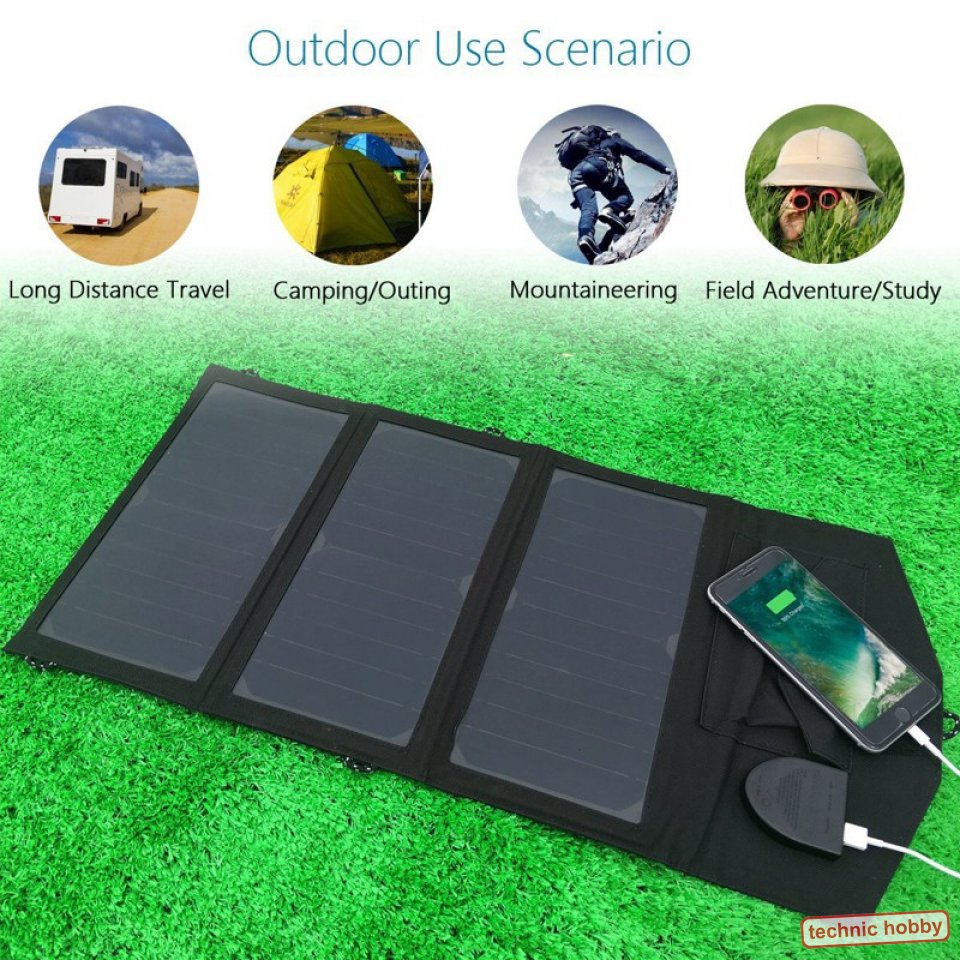 Tragbar, faltbares, leicht, regensicheres Design. Das Solarpanel läßt sich einfach zusammenfalten und mitnehmen. Eine Tasche auf der Innenseite nimmt Ladekabel und Adapter auf. Die praktischen Schlaufen können mit den mitgelieferten Karabinern dazu verwendet werden das Solarpanel überall anzubringen. Ob Outdoor, Camping, als Notladegerät für Autobatterien - es gibt ein breites Anwendungsspektrum überall dort wo keine Steckdose in der Nähe ist.