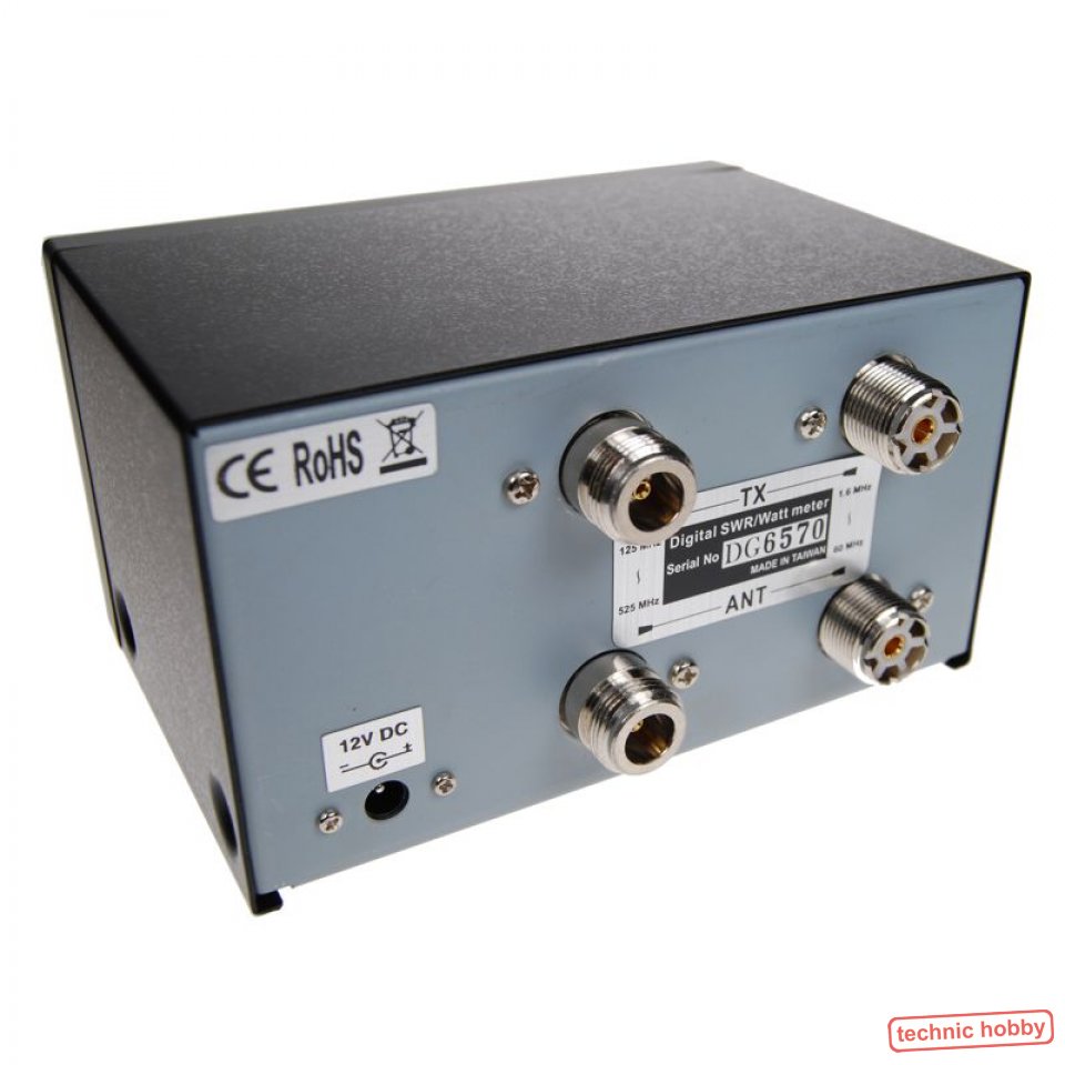 DG-503 Digitales SWR/Watt-Meter für 1,6-60 MHz und 125-525 MHz und bis 200 Watt Sendeleistung. Getrennte Messbereiche mit Umschalter. Mit 12 Volt DC-Buchse für LC-Dispplay mit Hintergrundbeleuchtung. PL-Buchsen im HF Bereich und im VHF/UHF-Bereich N-Buchsen. |