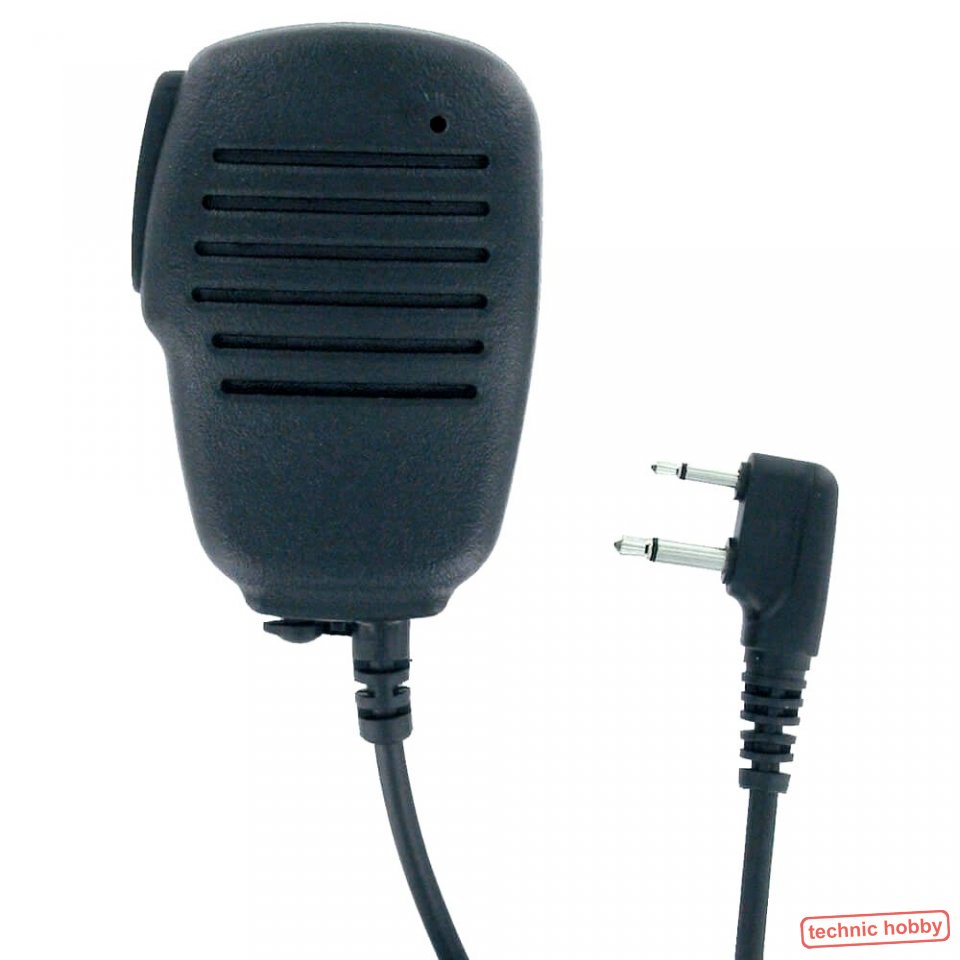 Praktisches Zubehör für Handfunkgeräte. Der Lautstärkeregler ist am Lautsprechermikrofon angebracht. Unten ist ein, mit einem Stopfen verschlossener, Anschluß für einen beliebigen Kopfhörer mit 3,5mm Klineknestecker.