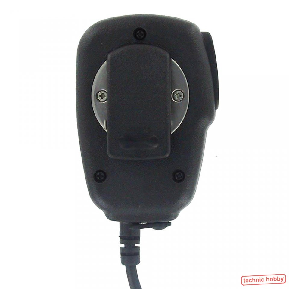 Das Mikro kann mit der Klemme z.B. an der Schulterklappe, am Kragen oder an der Jacke angeklipst werden. Man muss so nicht das Handfunkgerät vom Gürtel nehmen (oder überhaupt in der Hand halten) und kann mit Einhandbedienung kommunizieren.