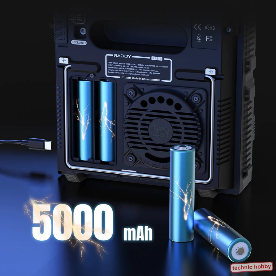 Multiband-Welt-Empfänger FM, AM, SW, CB, VHF, UHF, WX, AIR mit SSB. Maßgeschneidert für den weltweiten Einsatz, mit hervorragendem Sound. Die Evolution des RF75A und RF760 in der nächsten Stufe. Mittels der Präzisionsabstimmung erfolgt die Frequenzwahl mit zwei Knöpfen mit sattem Klicken oder man verwendet die Schnellabstimmungstasten. Der RF919 speichern bis zu 1600 Kanäle. Dual-Display, der 3,54-Zoll-Hauptbildschirm liefert wichtige Empfangsdetails, ergänzt durch einen sekundären Bildschirm für Signalstärke und Uhrzeit. Mittels der Remote-App-Steuerung kann der RF919 Weltempfänger mühelos bedient werden. Einhändige Bedienung trifft auf leistungsstarke Wireless-Funktionalität für eine nahtlose Steuerung über ein Smartphone. Der RF919 verfügt über einen starken 5000 mAh Akku, Bluetooth-Konnektivität, Micro-SD-Unterstützung und ein leistungsstarkes 20-W-Lautsprechersystem für ein überragendes Audioerlebnis. USB-C Ladebuchse und zur Verbindung mit PC / Notebook als Lautsprecher usw. Hervorragende Antennenkonnektivität durch drei externen Antennenoptionen für unübertroffene Klarheit auf allen Bändern. Optimaler Empfang unabhängig von Ihrem Standort ist damit garantiert. |