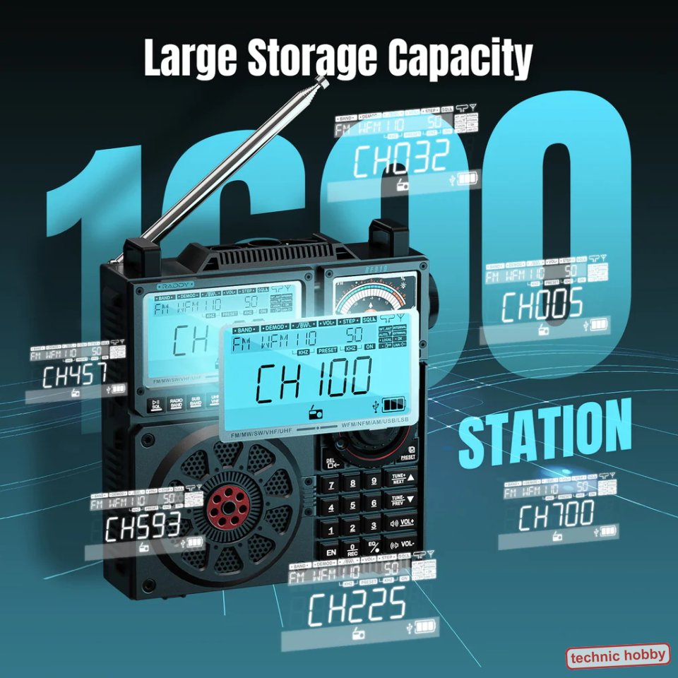 - Storage Capacity:1600 stations in total(FM: 100, MW: 100, SW: 100, AIR: 100, CB: 100, VHF/UHF: 100, UBD: 100)