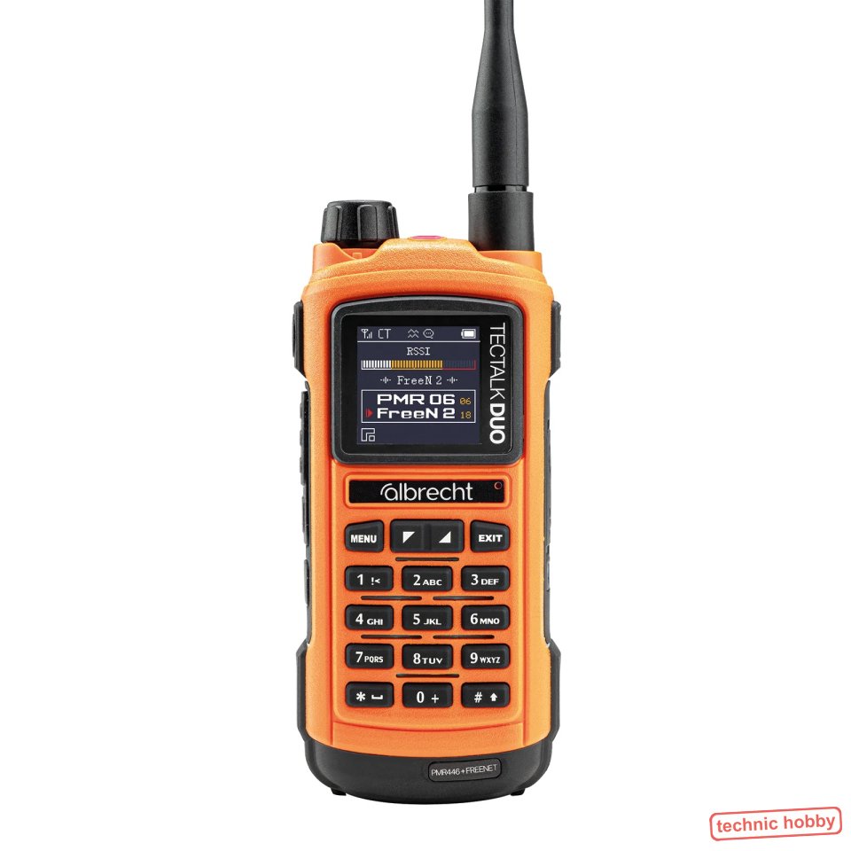 Das neue und leistungsstarke Albrecht Tectalk Duo glänzt mit zwei Frequenzbändern: klassische PMR446 Frequenzen und Freenet (1 Watt Sendeleistung) für eine höhere Reichweite. Die Nutzung ist anmelde- und gebührenfrei. Das Albrecht Tectalk Duo bietet professionellen Anwendern ein äußerst stabiles Gehäuse in Signalfarbe und sehr umfangreiche Funktionen. Das spritzwassergeschützte Gehäuse eignet sich optimal für den Einsatz im Freien.
