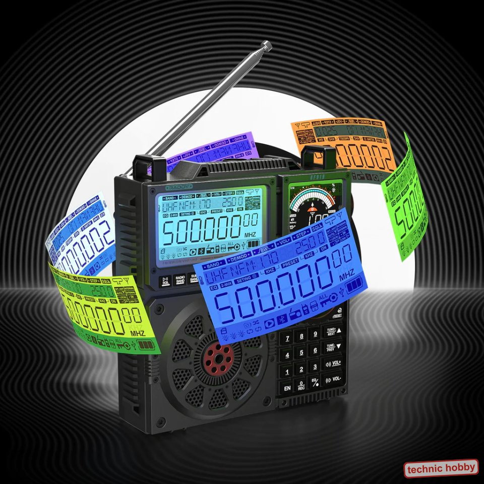 Multiband-Welt-Empfänger FM, AM, SW, CB, VHF, UHF, WX, AIR mit SSB. Maßgeschneidert für den weltweiten Einsatz, mit hervorragendem Sound. Die Evolution des RF75A und RF760 in der nächsten Stufe. Mittels der Präzisionsabstimmung erfolgt die Frequenzwahl mit zwei Knöpfen mit sattem Klicken oder man verwendet die Schnellabstimmungstasten. Der RF919 speichern bis zu 1600 Kanäle. Dual-Display, der 3,54-Zoll-Hauptbildschirm liefert wichtige Empfangsdetails, ergänzt durch einen sekundären Bildschirm für Signalstärke und Uhrzeit. Mittels der Remote-App-Steuerung kann der RF919 Weltempfänger mühelos bedient werden. Einhändige Bedienung trifft auf leistungsstarke Wireless-Funktionalität für eine nahtlose Steuerung über ein Smartphone. Der RF919 verfügt über einen starken 5000 mAh Akku, Bluetooth-Konnektivität, Micro-SD-Unterstützung und ein leistungsstarkes 20-W-Lautsprechersystem für ein überragendes Audioerlebnis. USB-C Ladebuchse und zur Verbindung mit PC / Notebook als Lautsprecher usw. Hervorragende Antennenkonnektivität durch drei externen Antennenoptionen für unübertroffene Klarheit auf allen Bändern. Optimaler Empfang unabhängig von Ihrem Standort ist damit garantiert. |